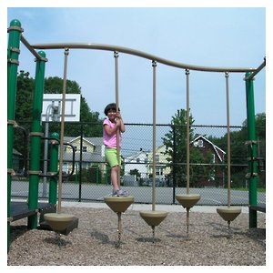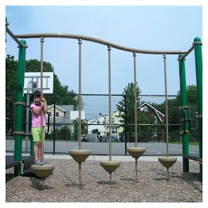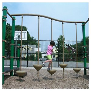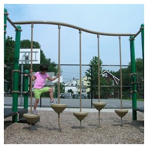 My daughter visits a local playground, and has been fearful of the "uneven steps." She can stand on the first step, but the poles that hold the step are made to wobble, and she clings tightly. She won't clamber onto the next step. She'll stay on the first step, slowly swaying, announcing that this is as far as she'll go. |